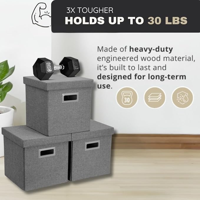 - 💪Exceptional Durability: Tested to be 3x more durable than market products, made of heavy-duty MDF board (engineered wood) for frequent use. Our fabric storage bins with lid can hold up to 30 lbs without warping or sagging even when stuffed.