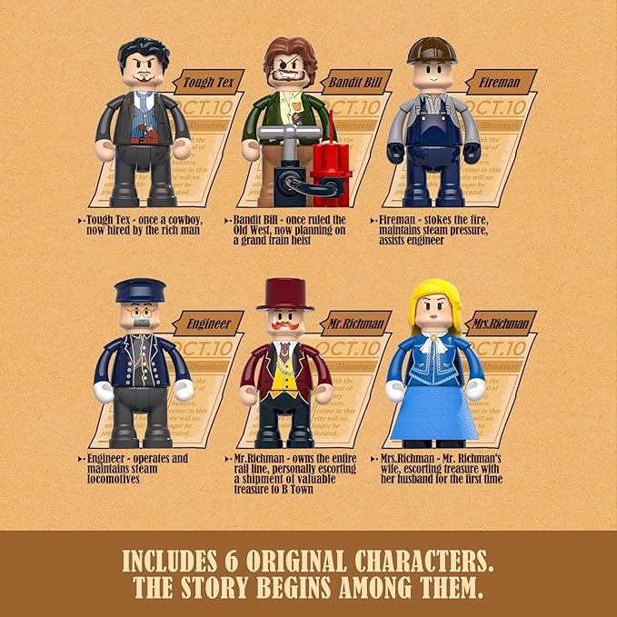 - Immersive Atmosphere: Complete set features authentic coal and log cars, a passenger car, and a detailed water tower that can be displayed with the train or as a standalone piece. Discover hidden easter eggs and bring the Old West to life!