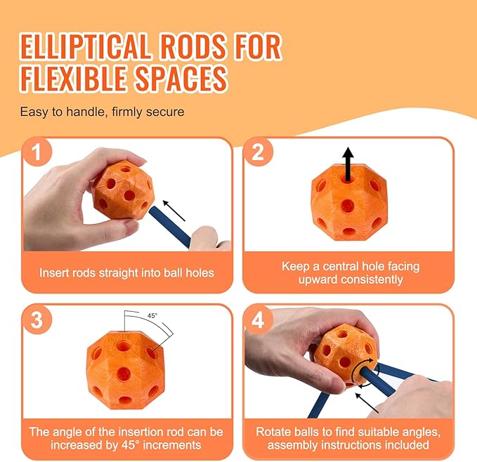 - 180-Piece Fort Building Kit: Explore endless possibilities with our kids fort building kit! It includes 60 solid balls and 120 lightweight yet durable connecting rods. Perfect for kids aged 4 and up to create their own 3D spaces—build forts, tents, pyramids, rockets, and more with parental guidance.