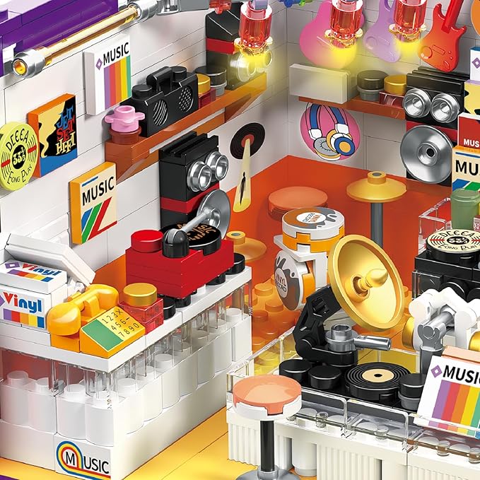 Friends House Building Block Set, Bear Record Shop Business City View Small Brick Model, Mini Construction Toy, Hobbies Christmas Birthday Gift for Teens Children Kids Boys Girls 6+, 554pcs