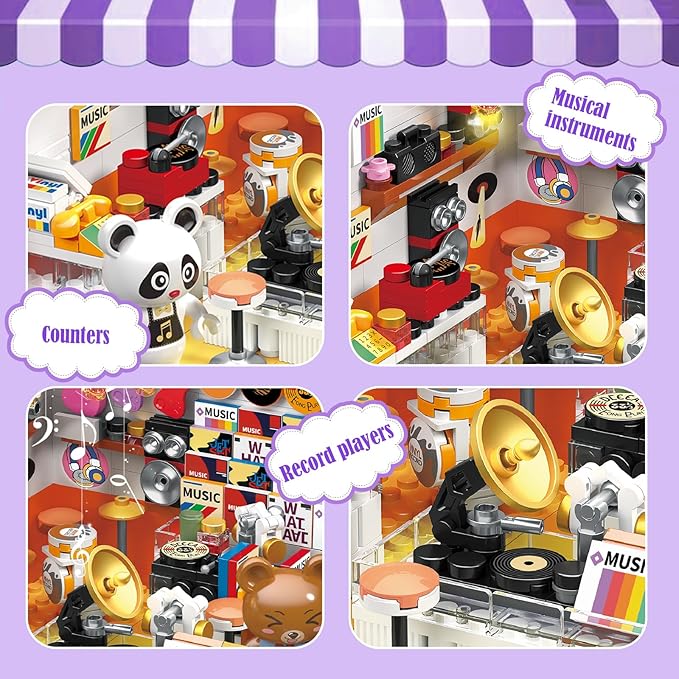 - 🏰【Build Creative Bear Record Store Scenes】: 554 pcs building bricks Mini size - 2/3 of the regular size. More challenging than regular sizes. Easter basket toy building block. Build a visually appealing coffee shop house with the toy building set. In vibrant purple and yellow colors, creating a lively atmosphere. Not a finishd product. Needs to be assembled. More details for you to discover.