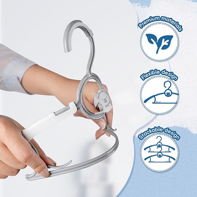 - Stackable Design:Maximize your closet space with our stackable baby clothes hangers. Toddler hangers are designed to minimize horizontal space, allowing for more efficient storage of child's clothes,offering you to organize child's cloest effortlessly