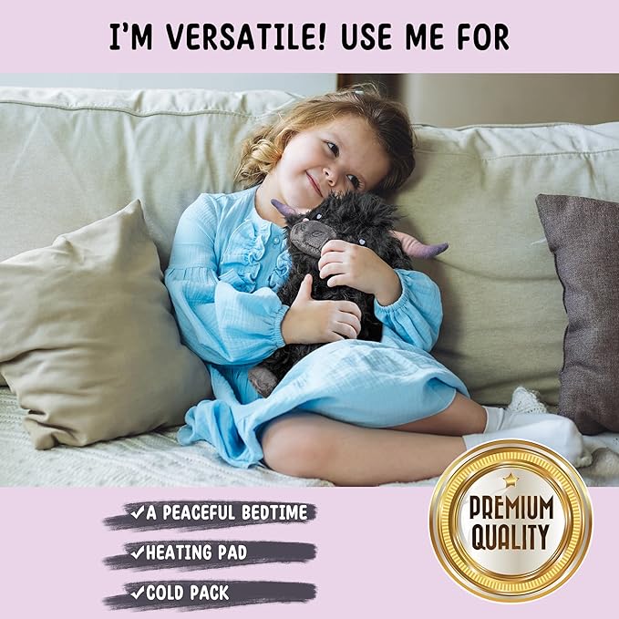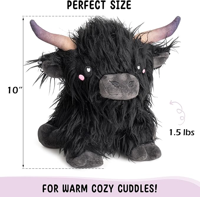 • 🐮 EXPERIENCE PEACE AND EASE - Our adorable silky soft highland cow can be used hot or cold! Made with premium quality materials and is the perfect size for warm peaceful snuggles, even for adults! Quality packed at 1.5 lbs for an ultimate cozy experience.