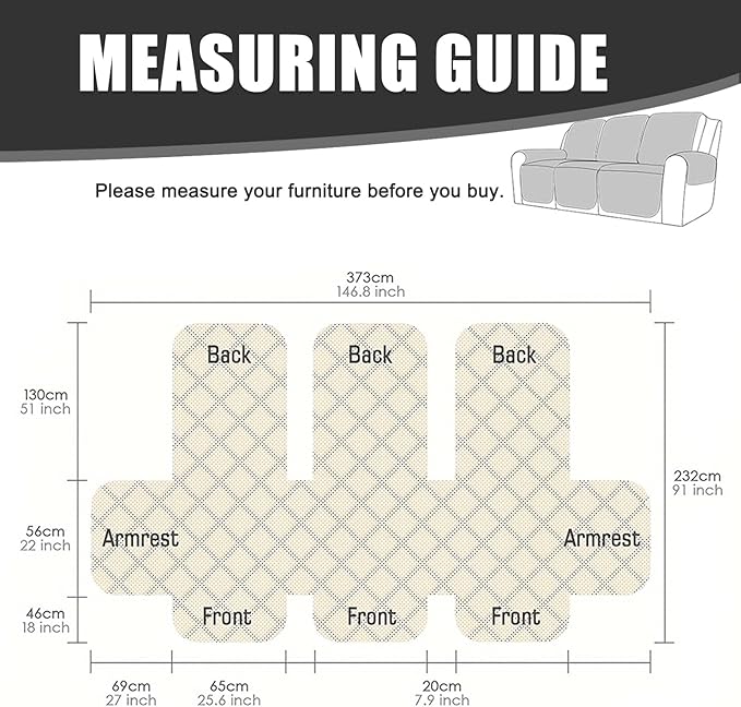 - Perfect Fit:Leather recliner every seat widths is 25.6".The total width is 146.8 inch.Be sure to measure the sofa before purchase. Elastic Bottom can provide all round protection for the sofa, protecting from stain, spill, daily wears and tears.