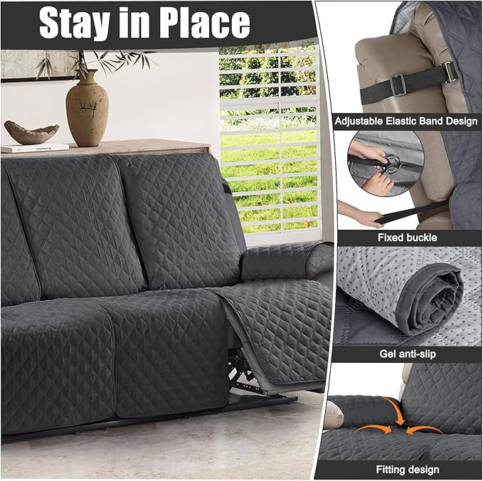 Waterproof Recliner Sofa Cover for 3 Cushion Couch,Nonslip Recliner Sofa Slipcover with Elastic Band,Furniture Protector Sofa Cover for Living Room,Bedroom(3 Cushion Sofa,Dark Gray)