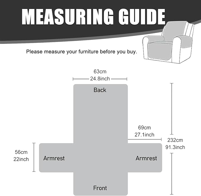 - Perfect Fit:Small recliner is 24.8 inches.Be sure to measure the sofa before purchase. Elastic Bottom can provide all round protection for the sofa, protecting from stain, spill, daily wears and tears.