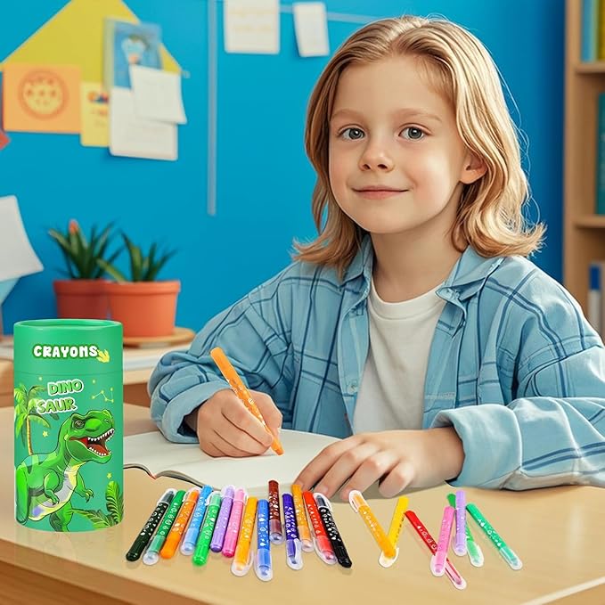 - Safe Crayons for Toddlers and Kids: The crayons are designed with your child’s safety in mind, being asbestos-free, lead-free, and phthalate-free.They are non-toxic and gentle on sensitive skin, making them perfect for kids and toddlers. Whether coloring on paper or having fun with face painting, parents can trust that these crayons provide a safe and enjoyable creative experience, all while neatly stored in a Dinosaur pencil holder for easy access!