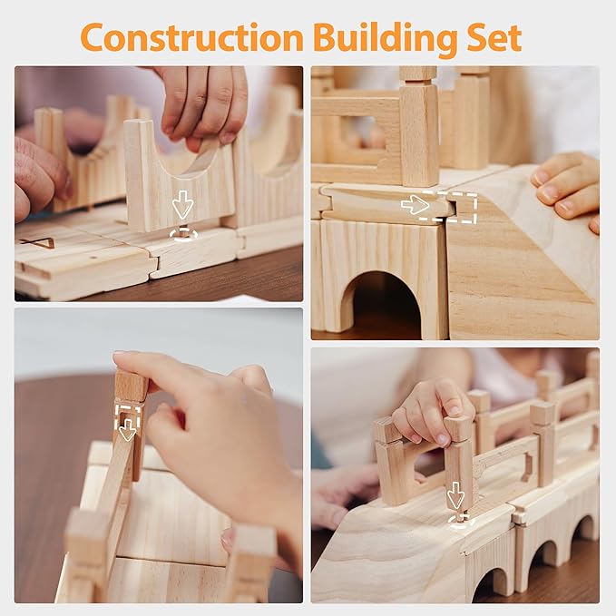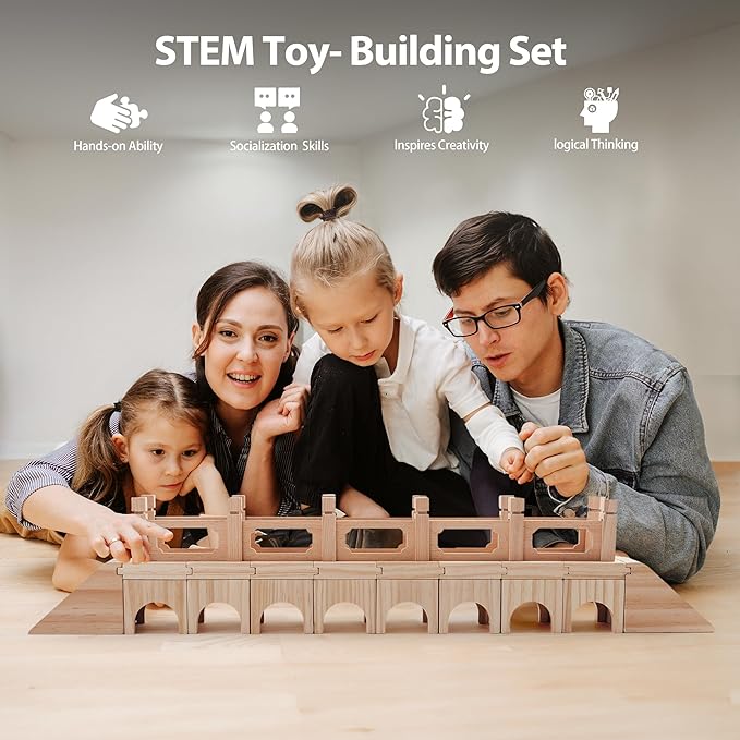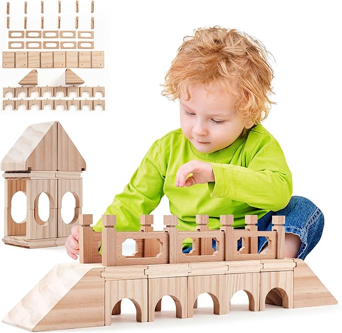 Building Toys, Building Blocks for Toddlers 3-5, Wooden Toy Building Sets Huge-Bridge Montessori Toys Creativity for Kids STEM Learning Toys for Toddlers Preschool Educational Construction Toys Age3+