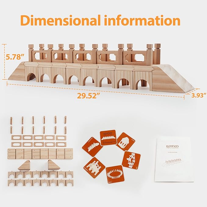 - WONDERING WHAT TO GIVE AS A GIFT? -The building blocks for toddlers 3-5 include 12 bridge piers, 10 bridge railings, 8 bridge decks, 2 bridge abutments, 16 bridge arches, 1 instruction manual, and 6 cards. Its size is 29.5x3.9x5.8 inches. Don't worry if it's different from expected. It's an excellent sensory toy for children with autism and also a terrific choice for the elderly as it helps prevent Alzheimer's disease. We are extremely expectant and delighted to see the wonderful works you share