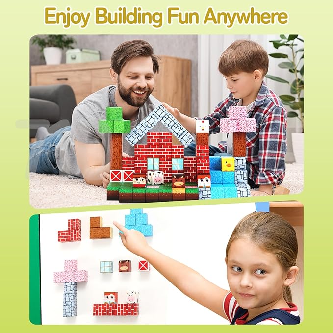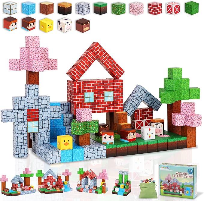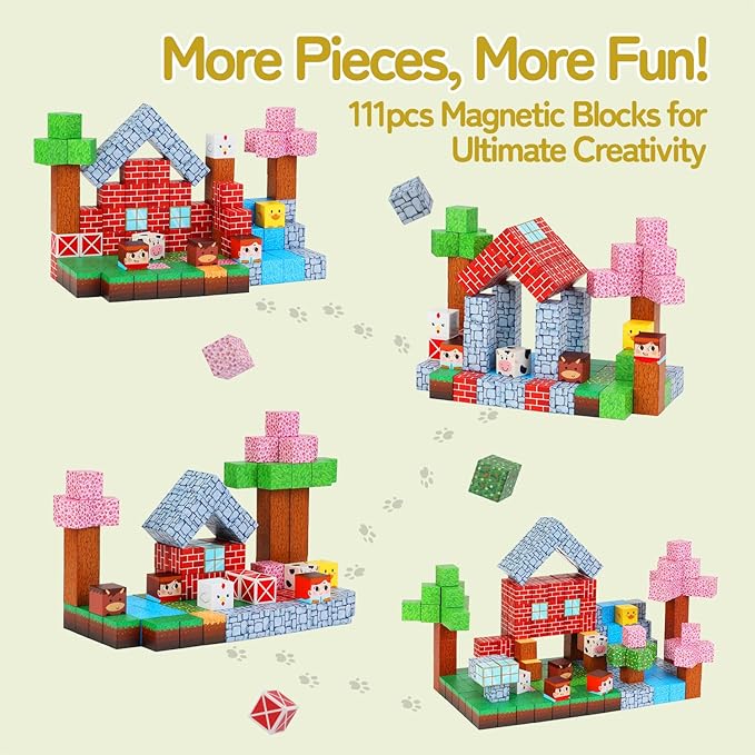 - Ranch Build Your Magnetic World: 111pcs These magnetic blocks open up a world of possibilities, Explore a vibrant forest full of cherry blossoms and meadows on one side, trees, cows, animals, and kids can build ranches and create their own ranch world!