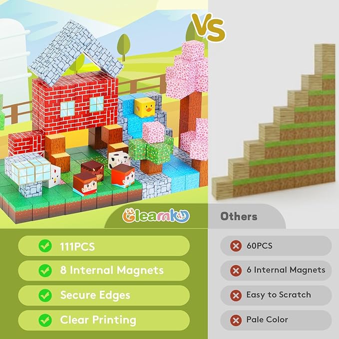 Magnetic Block Set - 111-Piece Magnetic Building Blocks - Ranch Mine Craft Magnetic Blocks Set, Magnetic Blocks for Kids Ages 4,5,6,7,8 STEM Montessori Sensory Building Game Toy Gift for Boys,Girls