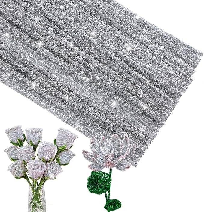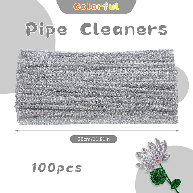 - What can You Get: 100 pcs of glitter silver pipe cleaners, meet your crafting needs. The handicrafts made with pipe cleaners shine brightly, especially suitable for making decorations for celebration moments. Go and make some handicrafts with friends or family for upcoming birthday parties and christmas.