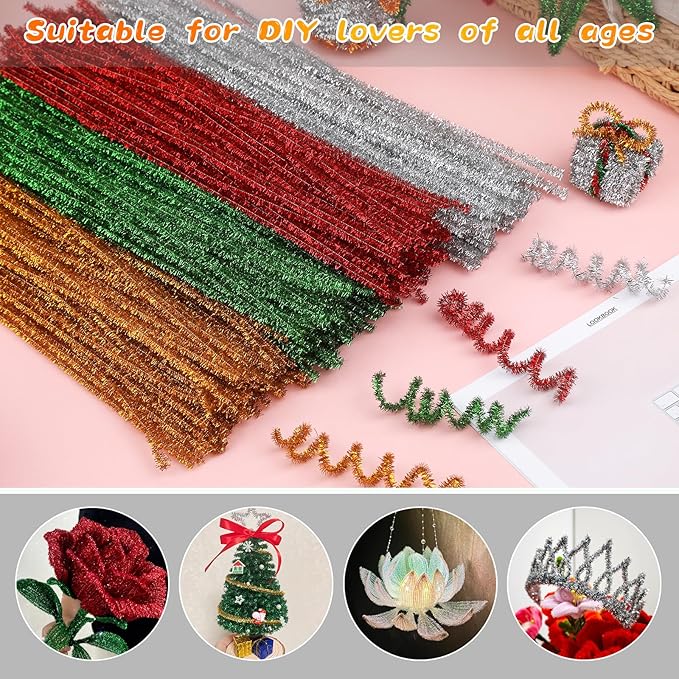 - Premium Quality Material: These pipe cleaners are made of metal wire and glitte, shiny, durable and not easy to break, can be flexibly bent into creative shapes and figures, and the finished product is not easy to fall apart.