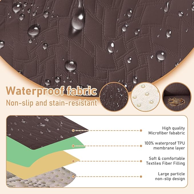 - 100% Waterproof Protection: The top of the recliner covers is coated with a waterproof layer, complemented by a TPU waterproof layer in the middle, offering a dual defense system to ensure 100% waterproof and leak-proof functionality. This innovative waterproof feature serves as a shield to safeguard your recliner from any spills, liquid mishaps, and daily wear.
