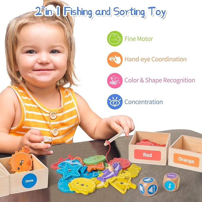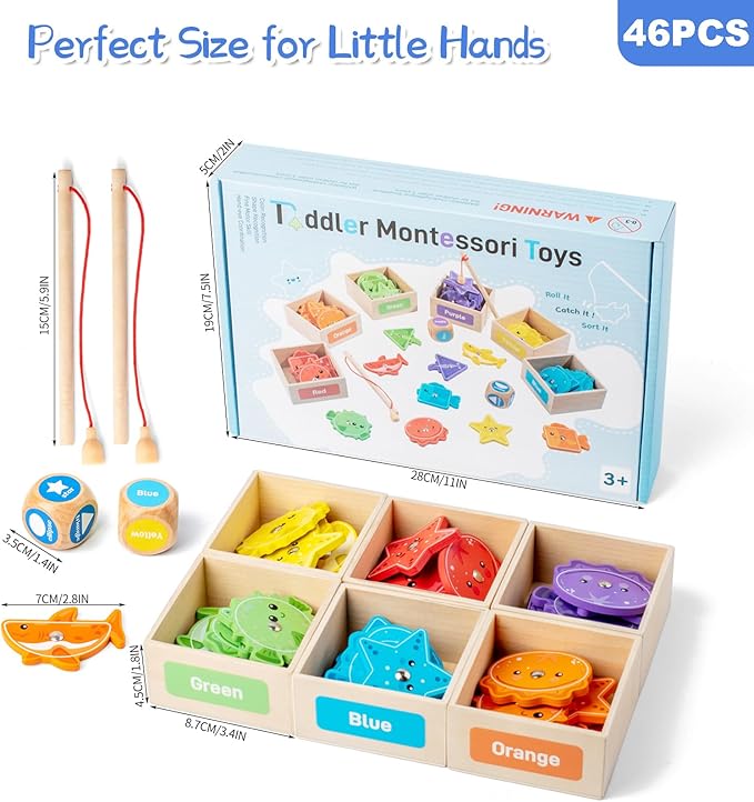 - 【Double-sided Magnet】With double-sided sealed magnet, better attract wooden fish and will not fall off midway. Learning toys that helps exercise children's motor skill, hand-eye coordination, and their ability to match shapes and colors