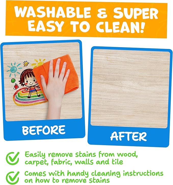- Washable, Easy To Clean, Mess-Free Fun. Washable Crayons For Kids Ages 4-8 are easy to clean & stain-free. This giant crayons for toddlers set won’t stain the skin and comes with clear instructions on how to use, store & remove marks from desks, walls, carpets & floors. Let your kids freely express their inner artist while you enjoy peace of mind.