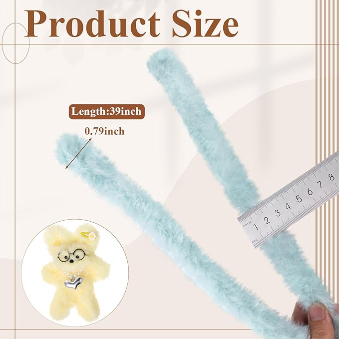 VitalCozy 10 Pcs 39.37 Inches Jumbo Fur Material Pipe Cleaners Chenille Stems Pipe Cleaner Craft Pipe Stems DIY Projects and Craft Supplies Decorations(Light Color)