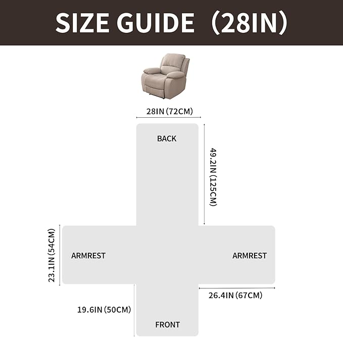 - Perfect Fit: Our recliner chair cover provides full coverage, protecting your chair from dirt and daily wear. It fits a variety of recliner sizes, ensuring a snug and secure fit. Please refer to the measurement guide on the product page to ensure the perfect fit for your chair