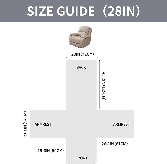 - Perfect Fit: Our recliner chair cover provides full coverage, protecting your chair from dirt and daily wear. It fits a variety of recliner sizes, ensuring a snug and secure fit. Please refer to the measurement guide on the product page to ensure the perfect fit for your chair