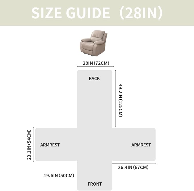 - Perfect Fit: Our recliner chair cover provides full coverage, protecting your chair from dirt and daily wear. It fits a variety of recliner sizes, ensuring a snug and secure fit. Please refer to the measurement guide on the product page to ensure the perfect fit for your chair