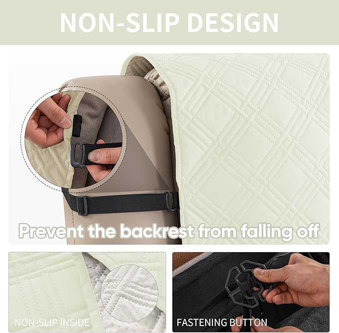 - Stay in Place: Equipped with a solid round colloid backing to minimize slipping, our cover features elastic straps at the top and back with round buckles for enhanced grip. It remains securely in place, even on leather furniture, providing a hassle-free experience