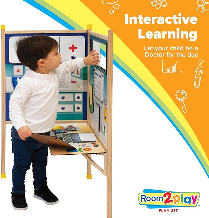Large Kids Pretend Play Set for Toddlers Ages 3+ Years –Wooden Toy Playset Folds Away for Easy Storage with 20 Fun & Interactive Pieces (Doctor's Office)