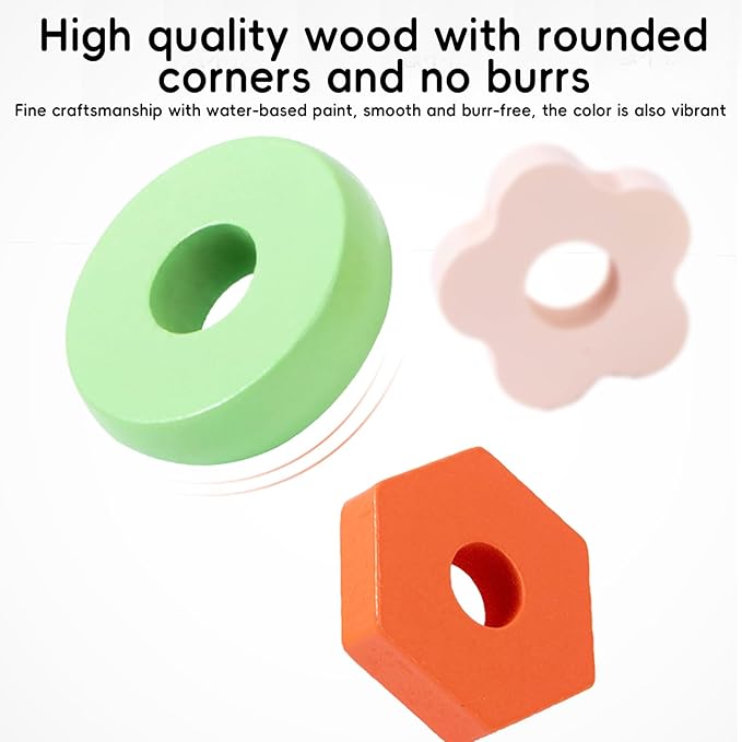 - Recognition of color, shape and size: Stacked wood blocks and simulated fish in a variety of mild colors inspire curiosity and exploration. Improve your baby's perception and cognitive ability of color, shape, and size during play. It also exercises your baby's ability to deal with problems and focus.