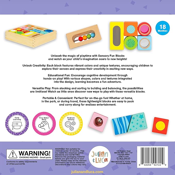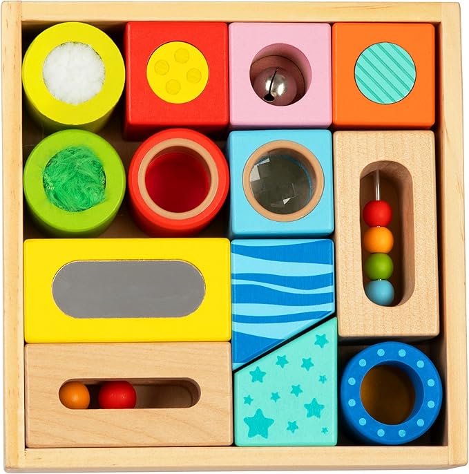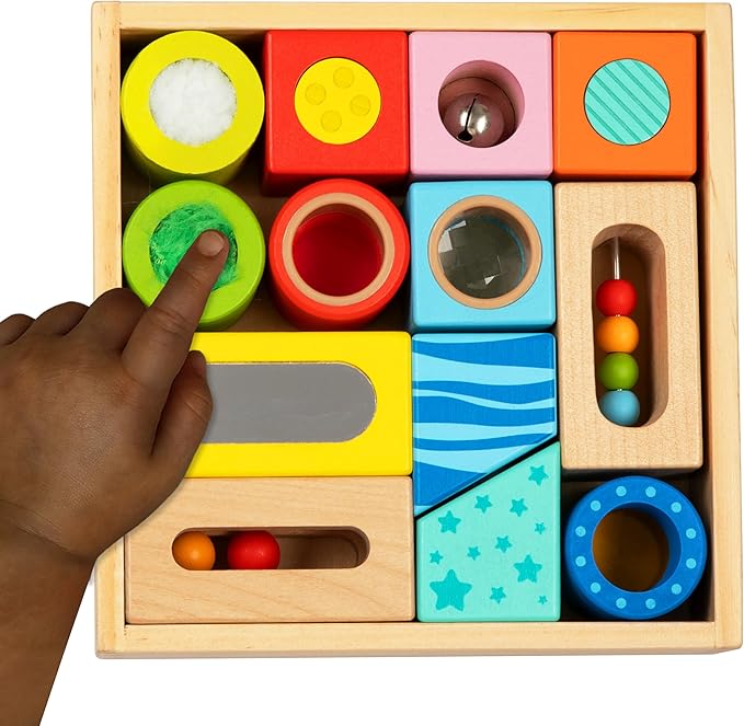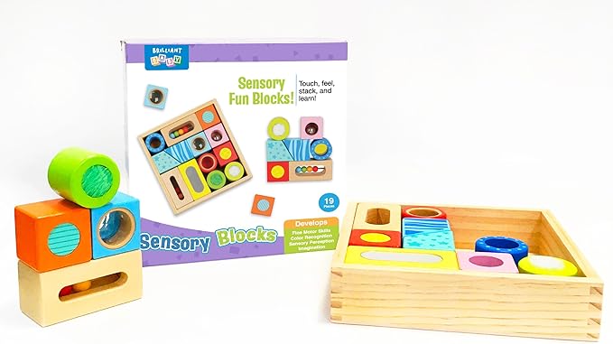 Brilliant Baby® Sensory Fun Blocks | Montessori Toy | Toddler Learning | Educational Wooden Baby Toy with Sensory Touch and Feel for Early Childhood Development | Interactive Toy for Toddler and Baby