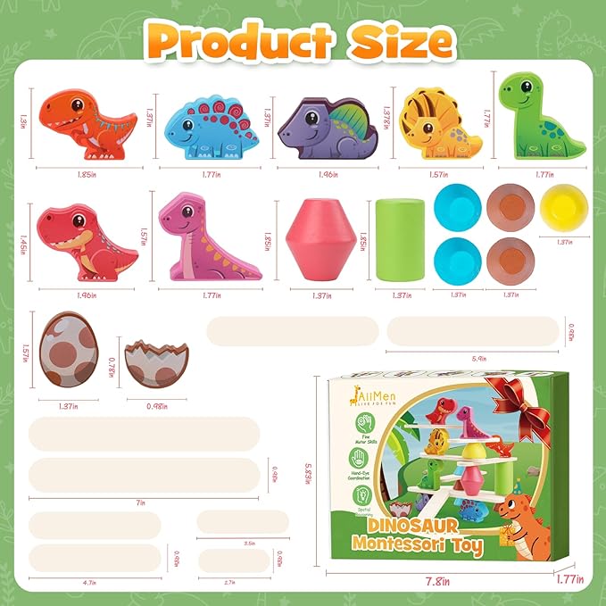 - A Thoughtful and Educational Gift: Whether for birthdays, holidays, or just because, this stacking and balancing toy set is a perfect gift that combines fun with education. The vibrant dinosaur shapes and geometric designs are sure to captivate children’s imaginations. Plus, the included storage box ensures that cleanup is easy and everything stays organized. Give the gift of learning with this dynamic and engaging toy set.
