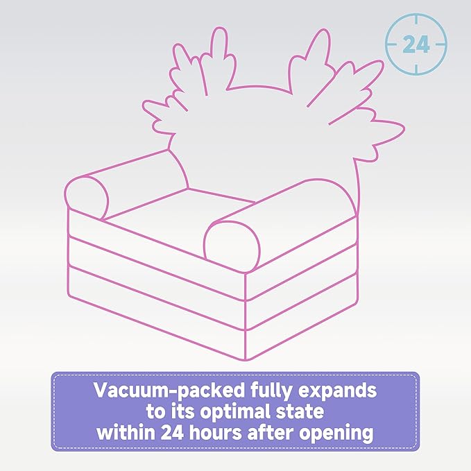 - Vacuum Packing: Our toddler sofa bed is vacuum packed. After removal from packaging, the mini couch for kids may take up to 24 hours to return to its full size and shape