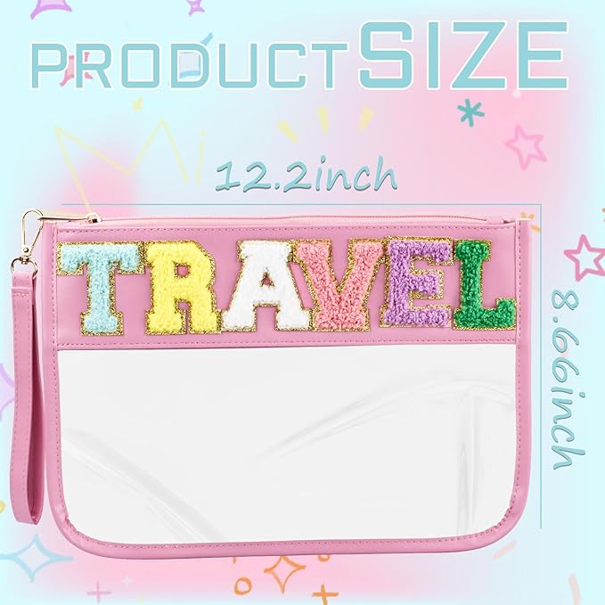 - Versatile: Chenille letter bag with clear flat pouch, perfect for travel, cosmetics, makeup, and snacks