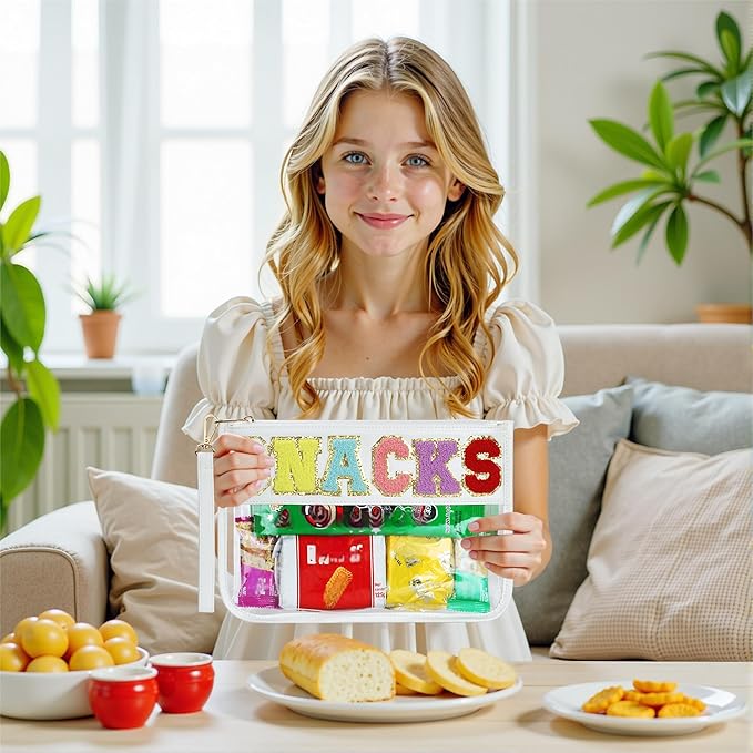 - Versatile: Clear snack bag with zipper closure, perfect for travel, makeup, or carrying snacks