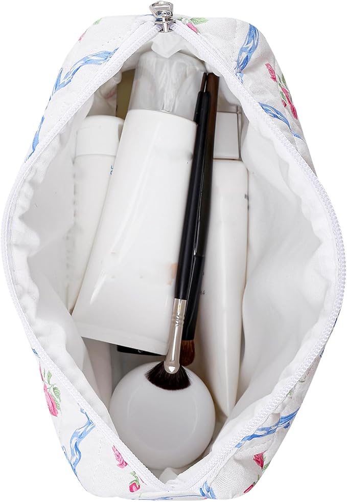 HHQQWZ Makeup Bag Travel Cosmetic Bag for Women Girls, Zipper Make Up Pouch, Floral Flowers Toiletry Organizer Makeup, Portable Storage Bag, Cosmetic Travel Cloth Bag (2 Pack (L+S)/Blue Bowknot)
