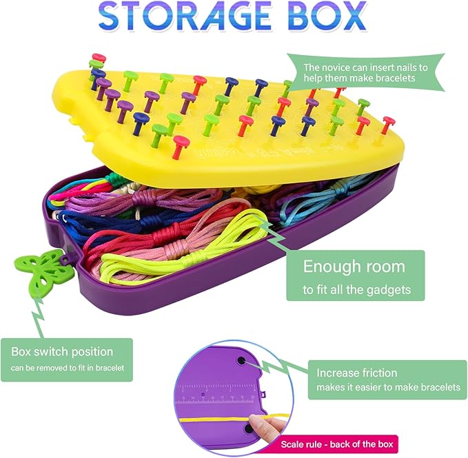 - 👉Fabulous Application: The craft kit is versatile, allowing your child to create bracelets, hair accessories, key chains, Chinese knots, and scool bag pendants. The box is cleverly designed to fit all the gadgets you need, making it really easy to carry without losing them.