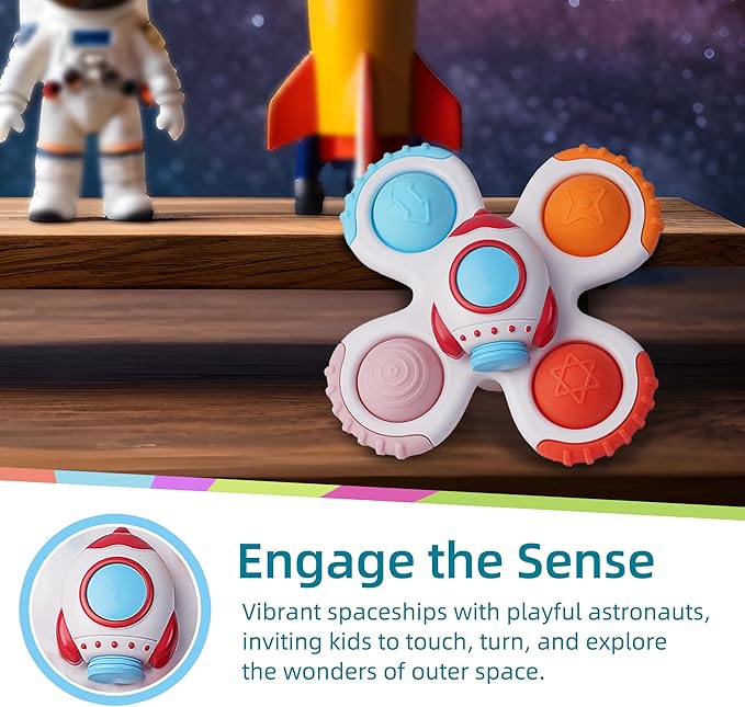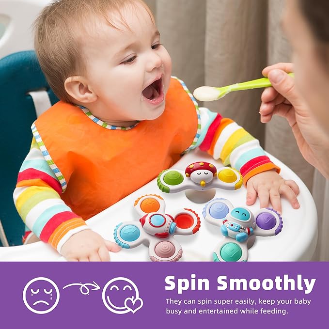 LiKee Strong Suction Cup Fidget Spinnerz Sensory Bath Toys for Baby 12 18 Months Airplane Car Travel Table & Window Toys for 1 2 Year Old Toddler Boys and Girls (Space-1)