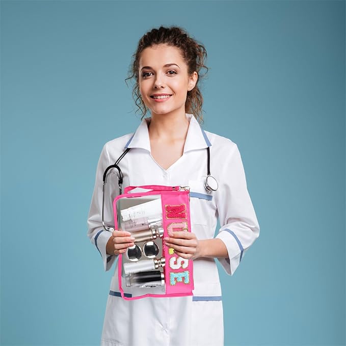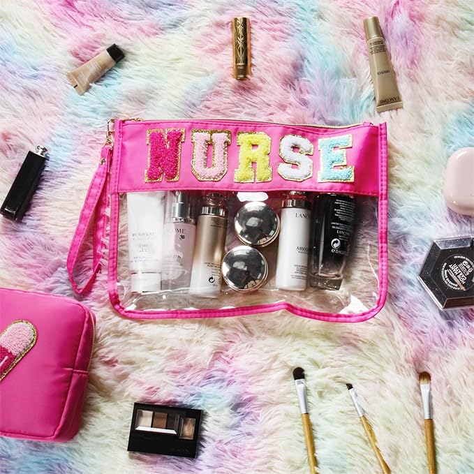 - Nurse-Inspired Design: This clear makeup bag features a vibrant pink color and a chenille "NURSE" patch, making it the perfect accessory for nurses and healthcare professionals