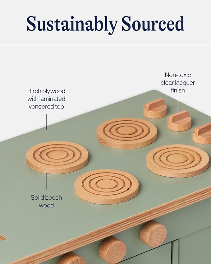 - SAFE & DURABLE: Crafted from sustainably sourced birch plywood, this wooden kitchen set features non-toxic finishes for safe play. Fully meets safety standards, offering complete peace of mind while your child explores culinary creativity.