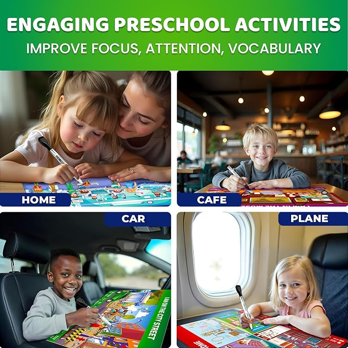 - PRESCHOOL ACTIVITIES THAT INSPIRE: From hide and seek games to toddler seek and find books, these mats are designed to enhance observation and thinking skills; a great travel companion for kids car games and activities anywhere they go
