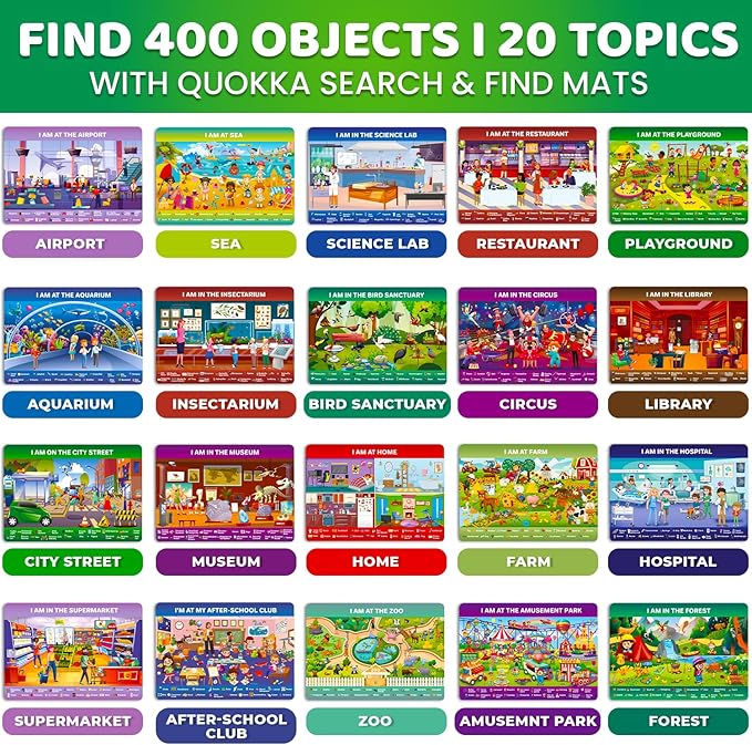 - EXPLORE 20 TOPICS & 400 OBJECTS: Discover fun in search and find books for kids 3-5 & seek and find books for kids 4-6; packed with 20 themes like animals, vehicles, and more; helps build vocabulary and keeps kids entertained during travel or at home