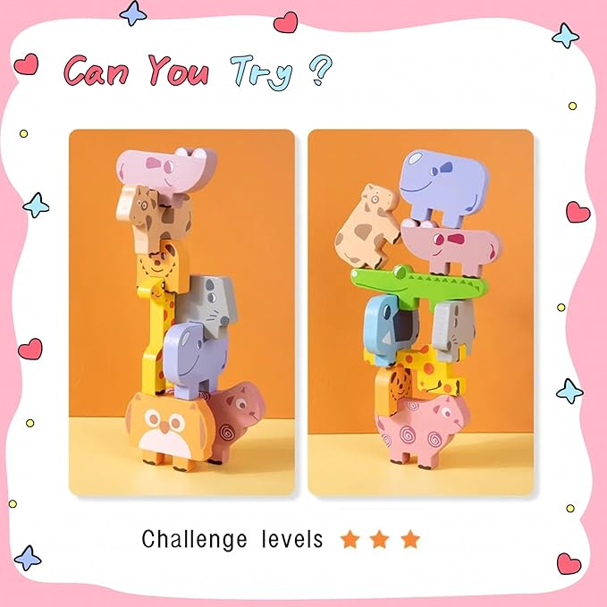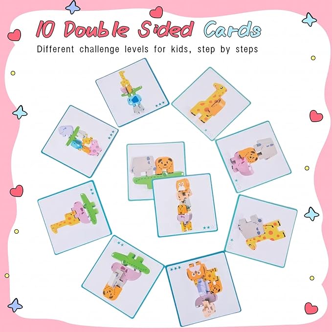 - 【Fun Family Game】with 10 double-sided challenge cards and 3 difficulty levels, kids play from easy to difficult. Perfect for family fun and game nights—parents, grandparents, and siblings can join in, competing in stacking games and balance challenges together!