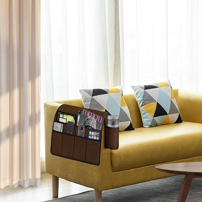 - Ultimate Organization: Ntomtuex Transform your living space with our 7-pocket sofa armrest storage bag. Perfect for keeping your remote control, water bottle, magazines, glasses, iPad, phone, and cup within easy reach. Enjoy convenience and a tidy environment!
