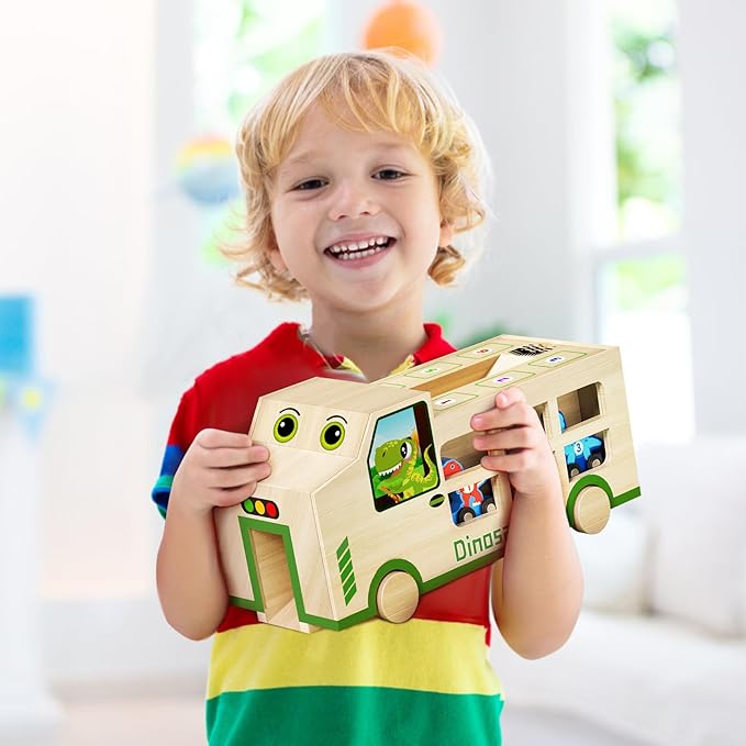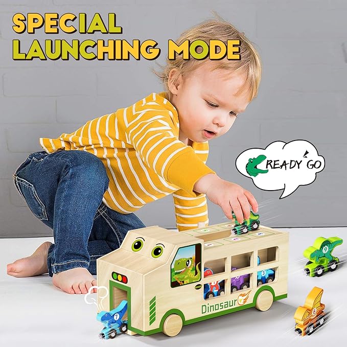 - Interactive Learning Adventure - As wooden learning toys for 3 year olds, each car connects via magnets to build number sequencing skills. The dinosaur truck includes a flip-down ramp for thrilling races and hidden belly storage – perfect gifts for 3 year old boys developing fine motor control. "Watch them giggle as dinosaurs race down the track!"