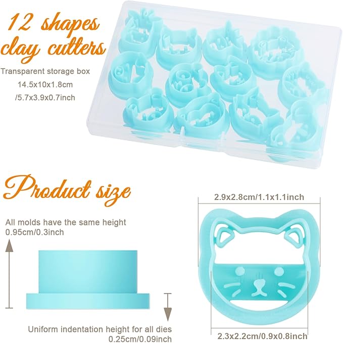 - Included Components : 12 Pcs Animal Polymer Clay Cutters, 1 pc transparent storage box