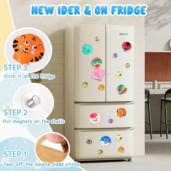 Kids Sea Shell Painting Kit, Arts & Crafts Gifts for Boys Girls, DIY Creative Activity Art Toys with Refrigerator Magnets, Kids Christmas Birthday Gifts Children Toys for Ages 5 6 7 8 9 10 Year Olds