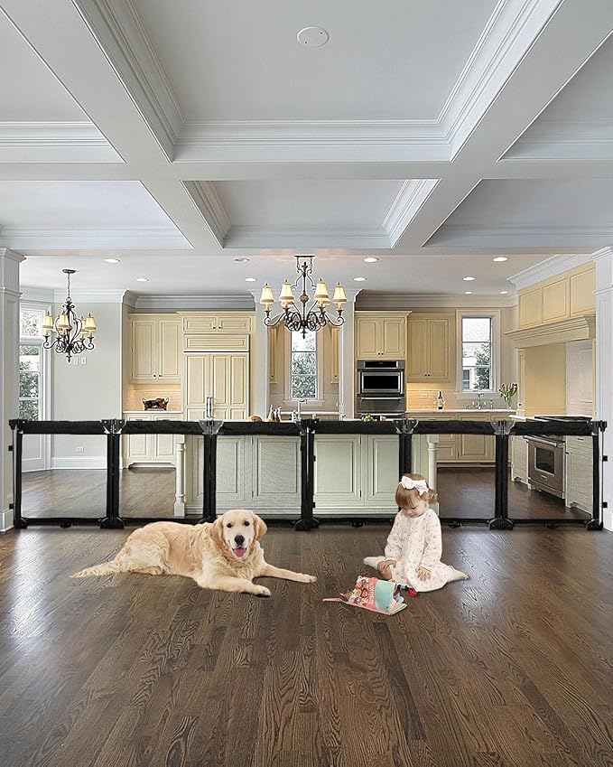 - Large Playpen or Safety Barrier:Create a spacious and safe play area with this 6-panel gate. Standing at 27.5 inches tall, it provides over 10.5 square feet of protected space, ideal for pets and children to play freely.
