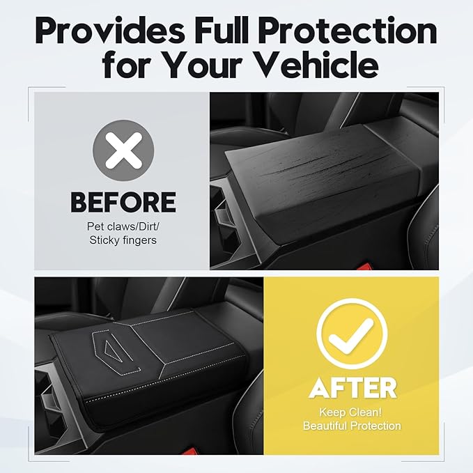- All-round Protection: The armrest cover provides full protection for your vehicle from pet claws/dirt/sticky fingers. Also cover existing scratches and prevent your car armrest from aging. And upgrading the interior of the car and making your car stay beautiful.