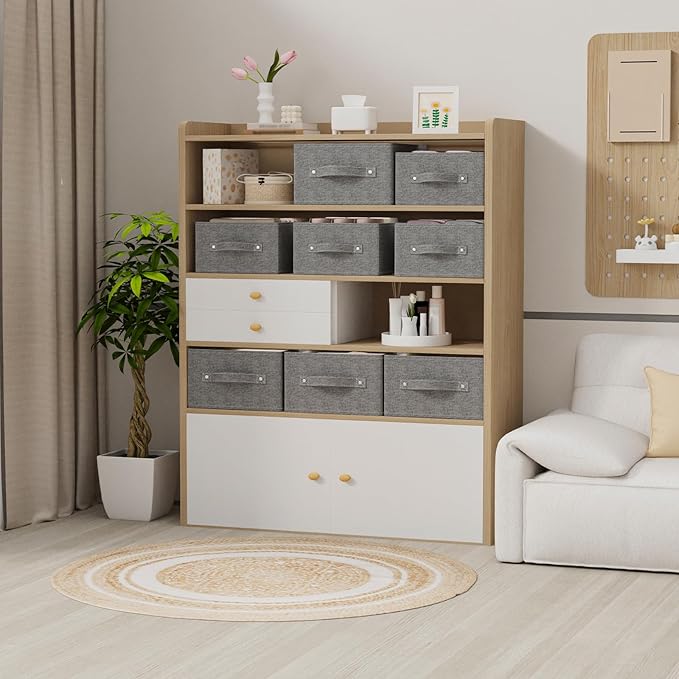 - Large Capacity Storage: Spacious fabric wardrobe organiser can easily store quilts, blankets, office supplies and cabinet basket storage, foldable storage box can be placed in the living room or bedroom
