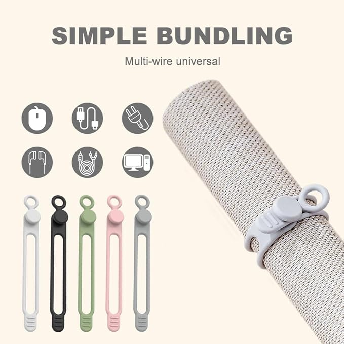 - Smart Design: Perfect for bundling and securing a variety of cords, including data cables, charger cords, and wires, keeping your space tidy.