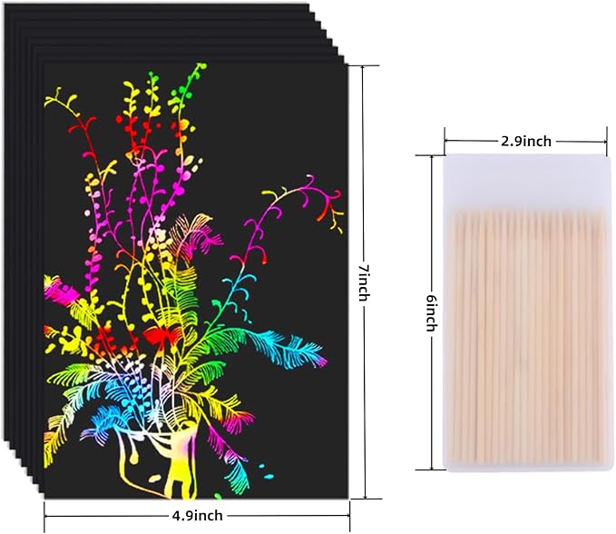 - SCRATCH RAINBOW ARTS KIT INCLUDED: 70 sheets of scratch paper (size: 7.0 x 4.9 inches), 25 bamboo stylus pens for teachers and kindergarten teachers to conduct classroom games with students. Children can use these scratch paper can design colorful patterns, which will bring them endless fun and creativity.