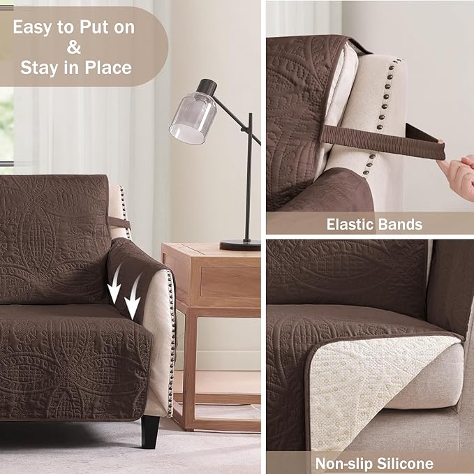 Soft Couch Cover with Pockets for Extra-Large Sofa, Medallion Quilted Design Couch Covers for 3 Cushion Sofa, Oversized Sofa Covers Washable Water-Repellent (X-Large Sofa 78", Chocolate)